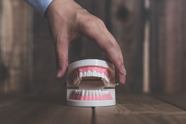 入れ歯は、歯ぐきの上に乗せて全体で支える構造のため、硬いものを噛むとズレたり浮いたりすることがあります。「噛みにくさ」を感じる方も多いです。天然の歯と比べて、噛む力は3分の1程度になると言われています。